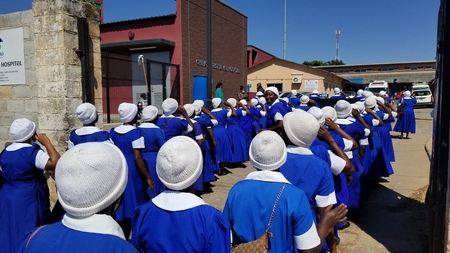 Marching into Chipata General Hospital for a Community Service